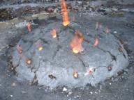 photos 1: les ateliers : po�le de masse au 1er plan, puis atelier forge et enfin atelier pl�tre. photo 2 : combustion dans le mini-four � chaux. La temp�rature a d�pass� les 1.000�. photo 3 : l'atelier "amadou" (mat�riau tir� d'un champignon et utilis� dans les briquets). photo 4: moulage de main � l'atelier pl�tre. photo 5: enfournage du mini-four � chaux. photo 6: atelier chanvre textile. Au 1er plan le "br�gon" destin� au broyage de la tige, � gauche confection d'�pissures, � l'arri�re plan machine � corder. |  |
