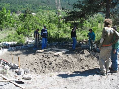 Avec l'appui important de nos amis de Centre Permanent d'Initiatives pour l'Environnement (CPIE) Haute Durance, la "calade" se construit. Elle est destinée à servir de sol à la « yourte » qui sera utilisée pour les conférences.