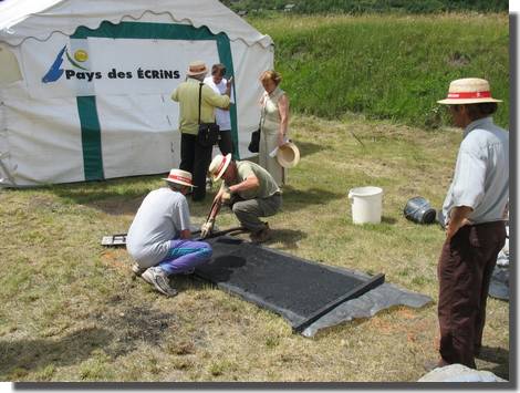 A cette occasion, nos constructeurs ont fait une démonstration de fabrication de briquettes destinées à être utilisées dans le four à chaux, lors de la 5ème opération "fours en fête" (du 23 au 29 juillet prochains).