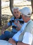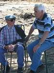 La manifestation est l’occasion de recueillir des témoignages. Ici, Raymond LESTOURNELLE enregistre le témoignage de Raymond MONIER, l’un des derniers mineurs de l’importante mine de Combarine.