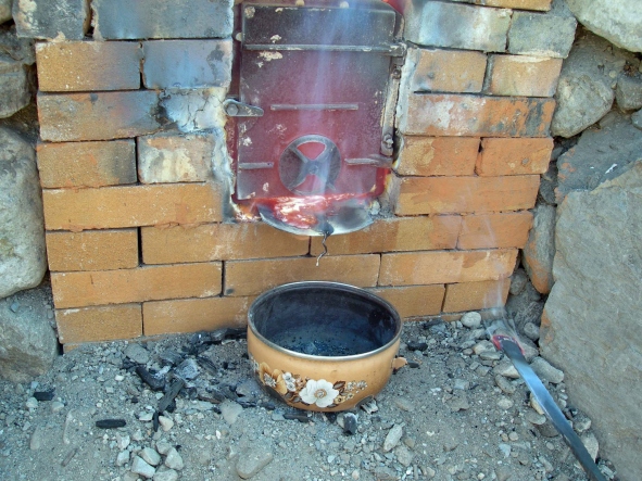 L'objectif était de fondre le minerai de galène argentifère de la mine du Fournel (l'Argentière-la-Bessée à 15 km au sud de Briançon). Pour cela nous avons construit, comme au XIX ème siècle, un bas-fourneau. Nous nous sommes inspirés pour cela d'un document publié sur Internet par l'encyclopédie coopérative WIKIPEDIA.Le four se compose d'un socle constitué d'un gros bloc de grès houiller, d'une base en briques réfractaires et d'une cheminée constituée d'UBR pour conduits de cheminée.