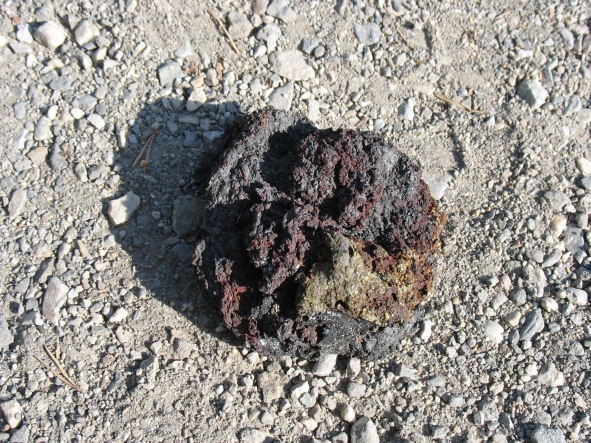 Des scories se sont formées, restes fondus de la roches encaissante (quartzite)