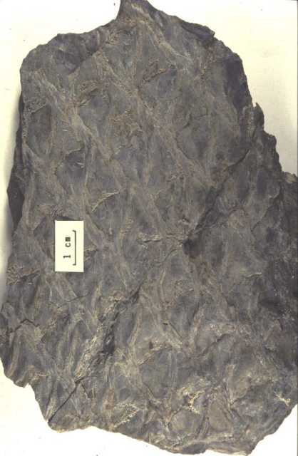 LepidodendronsLes losanges repr�sentent les cicatrices laiss�es par des petites feuilles apr�s leur chute. Ces cicatrices sont jointives. (Cliquez sur l'image pour revenir au texte)
