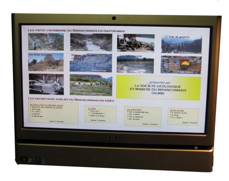 La borne présente une dizaine de diaporamas sur les thèmes chers à l'association et de courtes vidéos sur des savoir-faire oubliés.