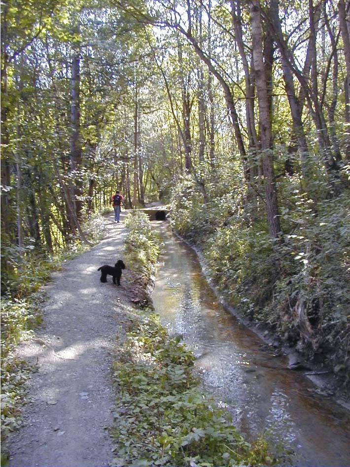 De tout temps, les berges des canaux ont été un moyen commode pour se rendre d'un point à un autre, sans s'astreindre à une dénivelée importante. Aujourd'hui, leurs berges sont largement utilisées par les promeneurs [photo 5] (notamment ceux du 3° âge), les joggers, les VTTistes et mêmes les motos tout terrain !