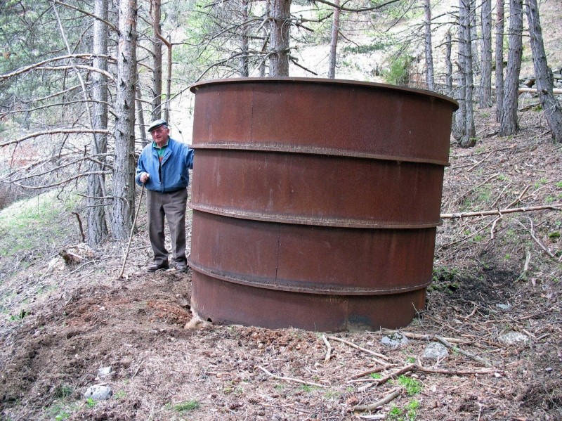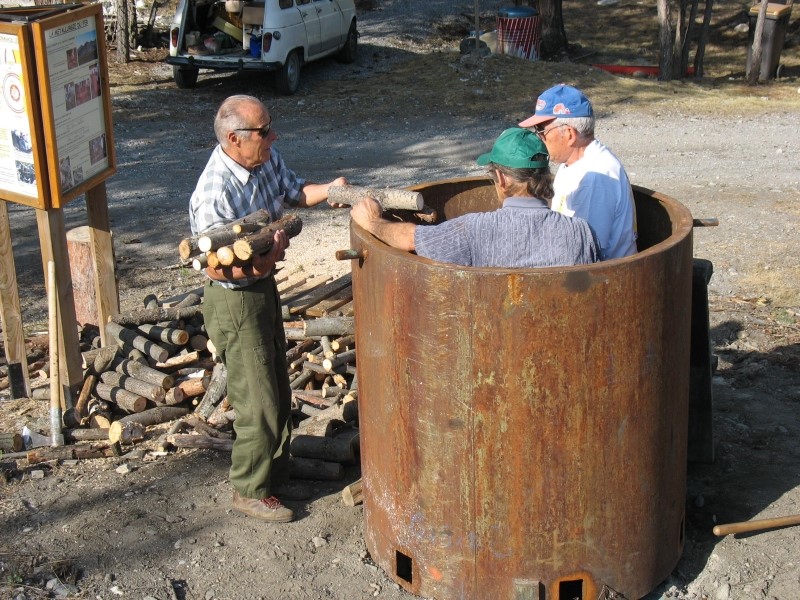 Le four à carboniser que nous utilisons (photo 3) sur l'espace fours de Villard St Pancrace provient de la transformation d'une cuve fournie gracieusement par les Fonderies-Aciéries de Provence (FAP) de l'Argentière-la-Bessée. Il s'agit d'un modèle " pédagogique " plus petit que les fours trouvés à Prelles.
