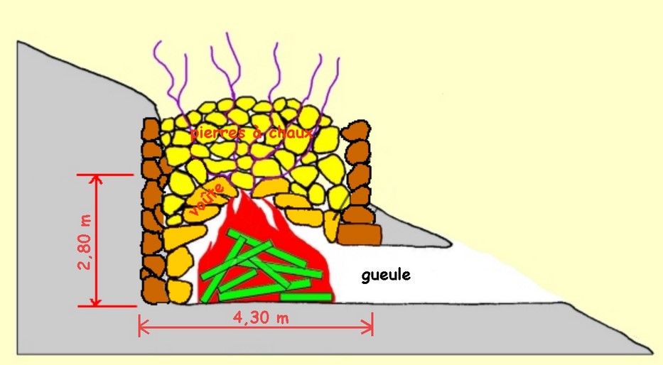 Avant que l'État n'impose l'usage du charbon, le combustible utilisé pour chauffer de la pierre à chaux était le bois. On trouve quelques vestiges de fours de ce type en Briançonnais. Ils sont encore utilisés dans les pays du Tiers-Monde.