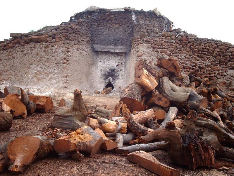 * dans la préparation, puisqu'il faut construire une voûte (photo 6) à chaque cuisson et stocker une grande quantité de bois (photo 7).
