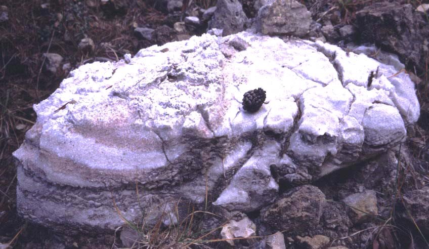 Le gypse est une roche blanche (photo 2) parfois teintée de rose (argile). Il est particulièrement abondant en Briançonnais (photo 3).