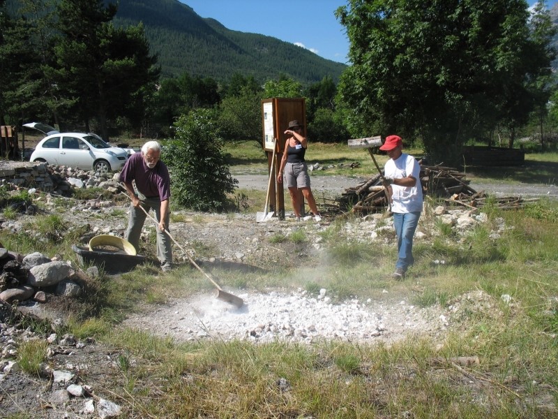 Le bois est mis à feu. Au bout de 3-4 h, de combustion, la transformation du gypse en plâtre est accomplie.