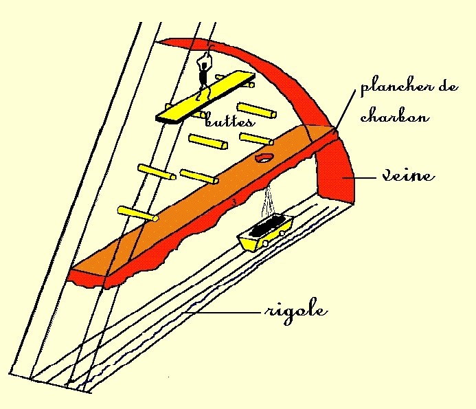 Les mouvements alpins ont souvent redressé les veines de charbon à la verticale, modifiant ainsi les techniques d'exploitation.
