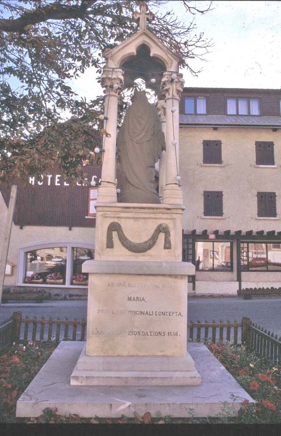 Le 30, St Chaffrey envoya demander du secours. Il était assailli par les deux torrents dont l'un le traverse1 [et] l'autre le longe (1). Les travailleurs du 52ème enlevèrent le pont de bois (3) de la route impériale qui étranglait les eaux et les faisait refluer dans le village qui fut ainsi sauvé, mais détruisit des terres sur une grande surface et comme toujours, les meilleurs.